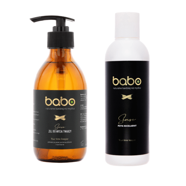 Ostatnie zestawy – żel do mycia w szklanej butelce 250ml oraz Płyn micelarny Senso w 200ml opakowaniu. Płyn micelarny – krótka data. Żel do mycia twarzy – 07.2026